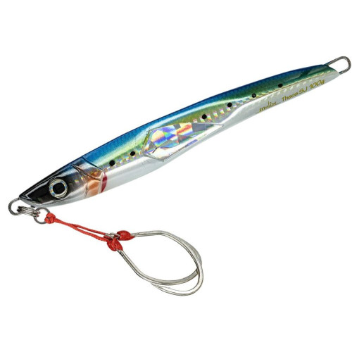 From the legendary Theos comes this version dedicated to the Shore Jigging technique. Versatile as in the VJ version, this Theos was conceived to be a highly customisable hybrid jig in terms of retrieving, profile and weight distribution. Made in Zinc alloy with reduced specific weight compared to the classic lead, this material increases its surface and gives the bait has a greater “flicker” effect when falling. It’s movements feature a remarkable side-to-side action which makes the jig way more attractive. It can be retrieved in short and long jerks slowly and with speed. It features eye-catching holographic inserts. Excellent when fishing close to the bottom in search of snapper, grouper and amberjack or in mid-water retrieved with wide jerks to accentuate the strong flashing and attract tuna (bonito, fine tuna, tuna) even from great distances. The Theos Shore Jigging has been equipped with a double assist hook; the generously sized hooks have been chemically sharpened and treated with a special finish that makes them more resistant to corrosion.