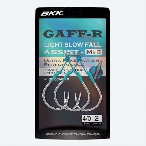 The pre-tied BKK Gaff-R assist hook is equipped with BKK fluorocarbon assist cord that ensures a proper orientation of the hook, improving its penetration performance and providing a well-balanced flexibility to the cord.