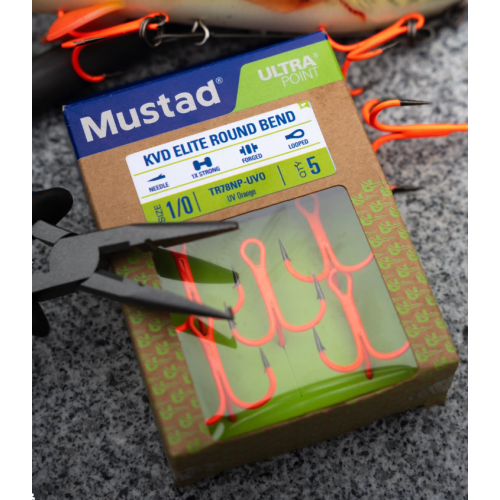 Mustad KVD Elite Round Bend Treble Hook UV Orange