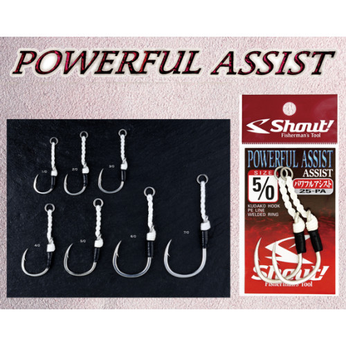 Powerful Assist su udice za najveće predatore. Za izradu ovih assist udica korišteni su Kudako udica, PE špaga, solid ring i plastična tuba za zaštitu spoja.