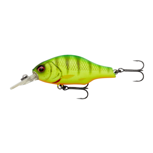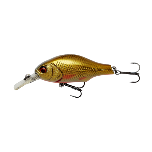 Super detailed Crankbait, with superb details. Square bill, medium runner, with a high arched Back, moving a lot of water on retrieve, great wobbling, wide action, with high buoyancy, moving up in the water on spin stop. Built in tubular rattle chamber, that sends out a loud and characteristic sound. The magnetic long cast system, with a sliding iron core, makes far and precise casting super easy. Great lure for Perch, Pike, trout, Zander, Asp and Bass.